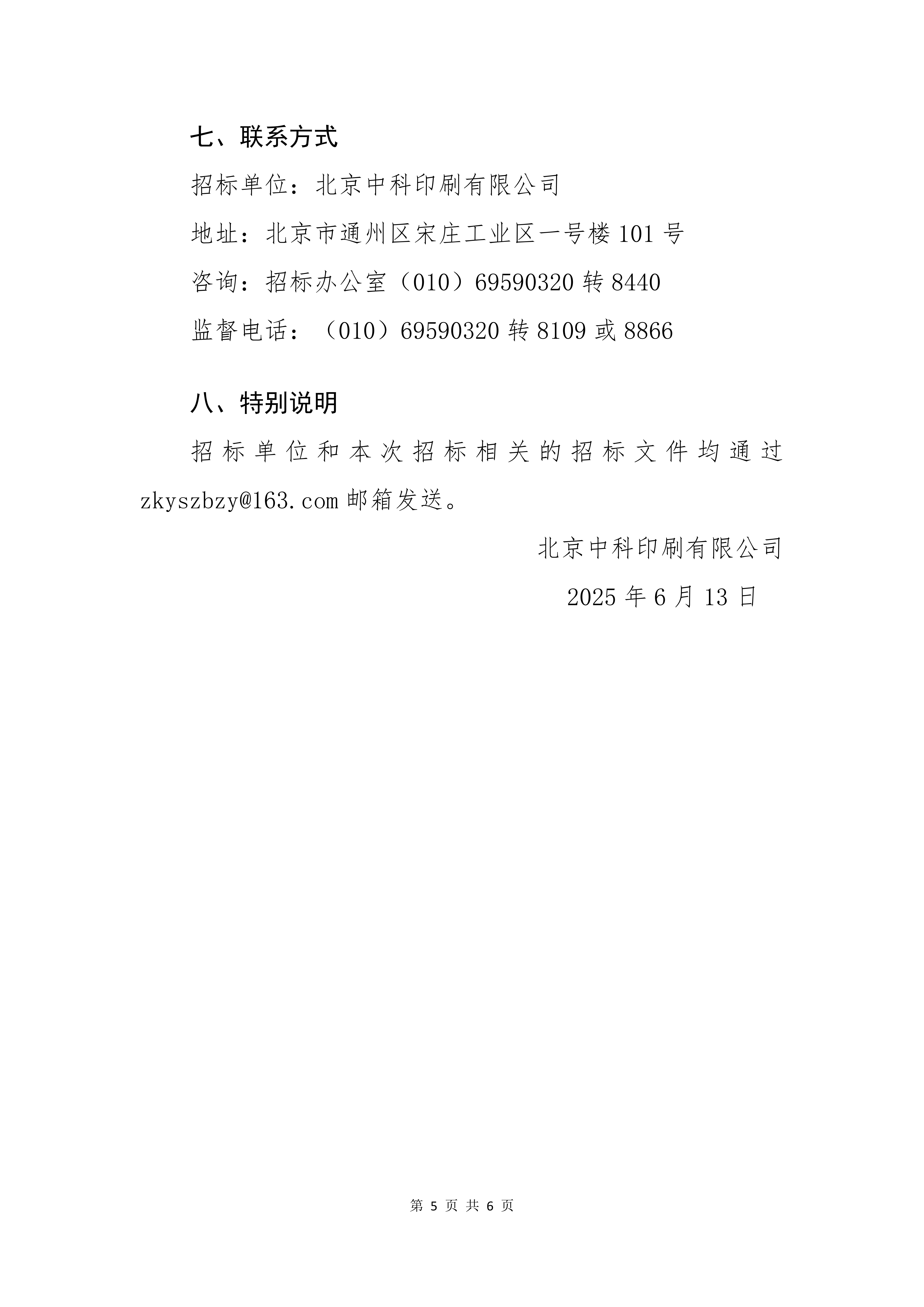 北京中科印刷有限公司關于2025年度第三批次印刷材料采購的招標公告