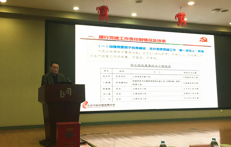 2018年1月22日,京區(qū)企業(yè)2017年度黨建工作述職報告會在文獻情報中心一層報告廳進行。我公司黨委書記、董事長沈幸華同志代表中科印刷就2017年度的黨建工作做了述職報告。